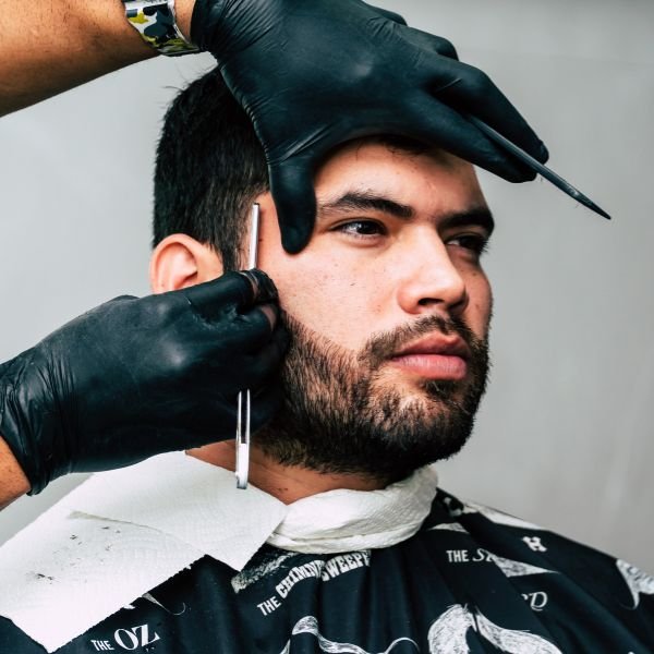 Achieve a sharp, defined beard with our precise straight razor trim for a sleek, professional finish.